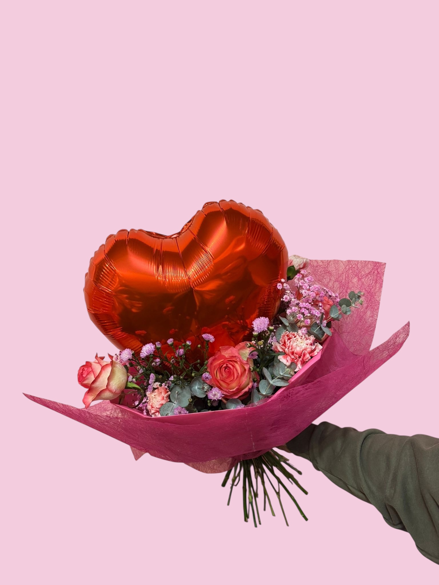 Wil je jouw Valentijn verrassen met een romantisch gebaar dat meteen een glimlach oproept? Het Valentijn Boeket Roze met Ballon is een echte liefdesverrassing. Dit elegante boeket bestaat uit prachtige roze rozen, zorgvuldig geschikt en gecombineerd met een feestelijke liefdesballon. Op de ballon kun je een persoonlijke tekst laten schrijven (maximaal 5 woorden), zodat jouw boodschap extra speciaal wordt. Een perfecte combinatie die zegt: “Jij bent speciaal voor mij.”