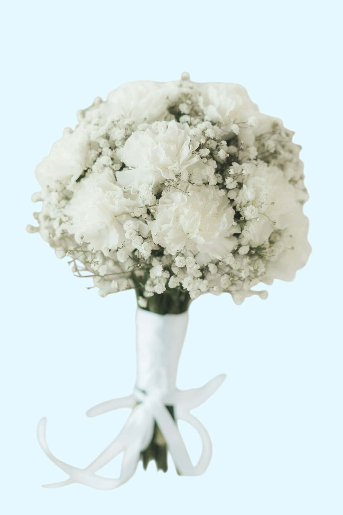 Bruidsboeket Classy is de ultieme keuze voor de bruid die houdt van eenvoud met klasse. Een strak gebonden boeket van witte anjers en luchtig gipskruid, afgewerkt met een elegant wit lint. Tijdloos, stijlvol en krachtig in zijn eenvoud.