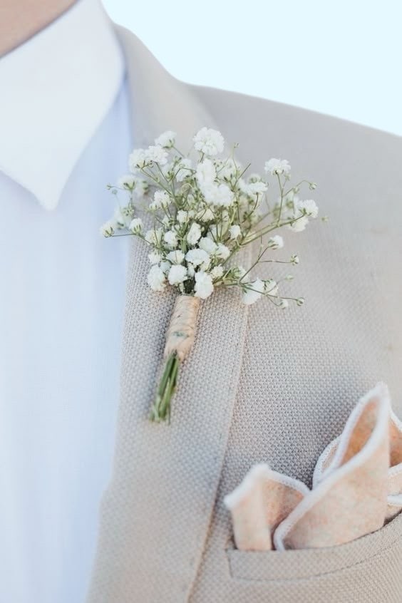 Corsage Gips is een verfijnde, minimalistische keuze, gemaakt van enkel gipskruid en subtiel afgewerkt met een natuurlijk touwtje. Deze corsage straalt eenvoud, frisheid en elegantie uit, en past perfect bij een natuurlijke of ingetogen trouwstijl.