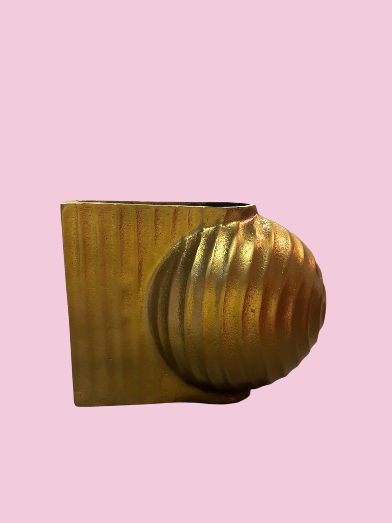 De Vaas Goldy is een prachtige en originele vierkante vaas met een bijzondere bolvorming aan de zijkant. Met een afmeting van D30 × H21,5 cm is dit een unieke eyecatcher die stijl en elegantie uitstraalt. Perfect om te vullen met bloemen of een prachtig zijden stuk, maar ook zonder boeket een waar kunstwerk in je interieur.