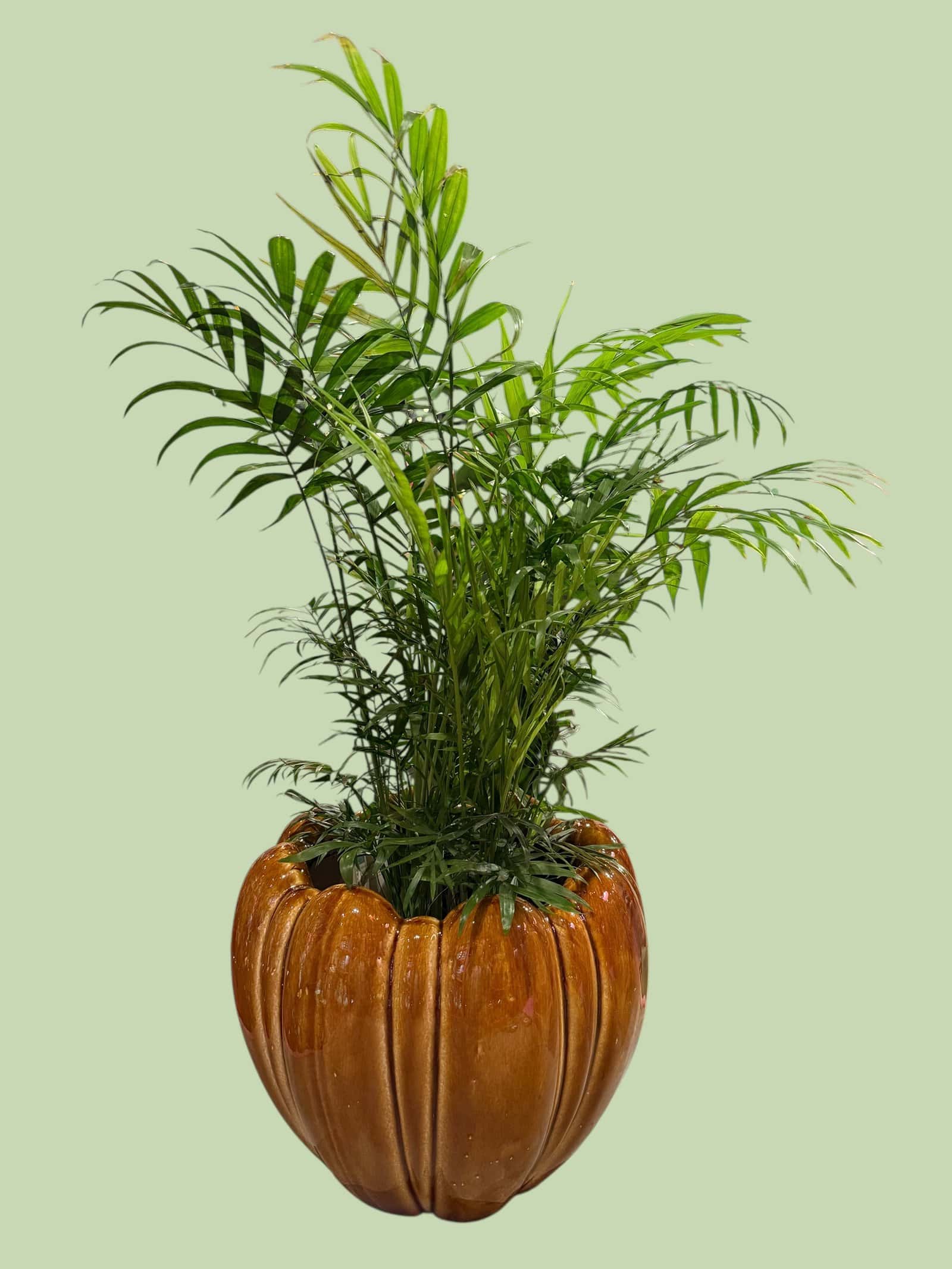 Breng een tropisch en luxueus accent in huis met deze prachtige Goud Palm in een warme, bruine pot. Perfect als cadeau voor een housewarming of als stijlvolle toevoeging aan je eigen interieur. Wil je een andere kleur pot? Geef dit gerust aan in de opmerkingen, dan denken we met je mee en zorgen we dat je de perfecte match krijgt.