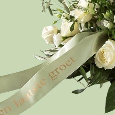 Een rouwlint is een waardevolle toevoeging aan uw rouwbloemstuk. Het biedt ruimte voor een korte, persoonlijke boodschap waarmee u uw gevoelens op een ingetogen en respectvolle manier tot uiting kunt brengen.