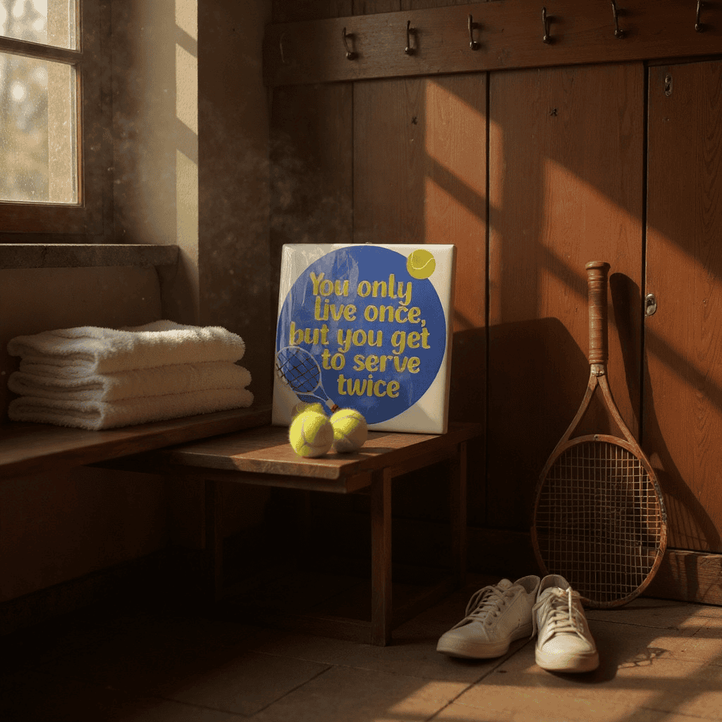 Een knipoog naar de snelgroeiende sport padel! Dit tegeltje met de grappige tekst “You only live once, but you have to serve twice” is een echte must-have voor iedere padel-liefhebber. Het geeft je interieur een sportief en vrolijk accent – en is natuurlijk hét perfecte cadeautje voor je padelmaatje.
